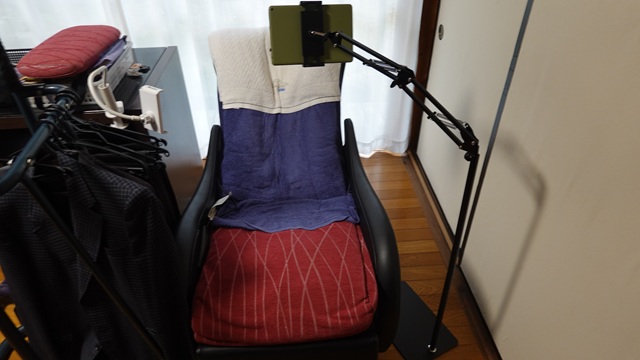 そこで、何とか環境を良くしようと百均(と言いつつ500円位したはず…)でタブレットホルダーなるものを購入しました。